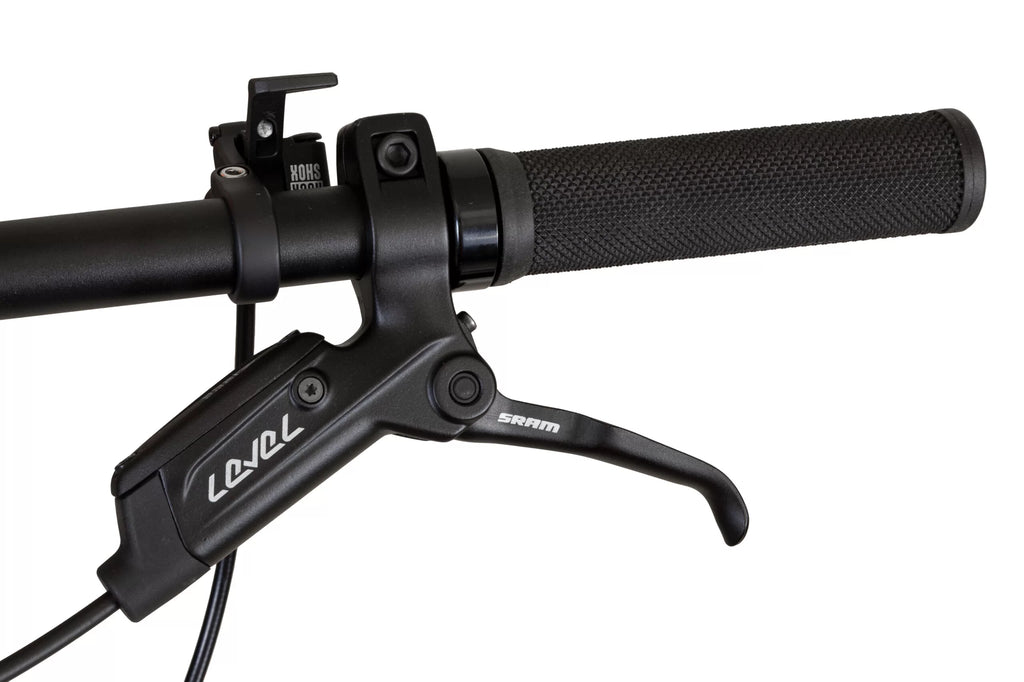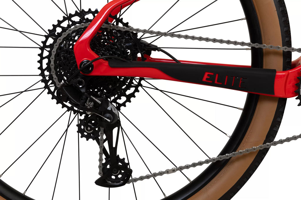 A Elite Carbon FS é equipada com RockShox Judy Silver TK, a ar, com 120 mm de curso, shock RockShox Deluxe Select+, selim Royal Ciclo, grupo SRAM NX, com pedivela SRAM Trylo 6k, freios SRAM Level e pneus Maxxis Ikon 29×2.20.